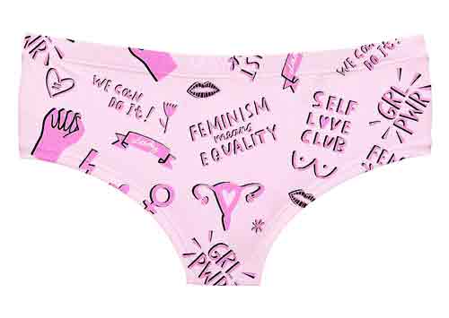 El feminismo en bragas, aparte de los consabidos panfletos de sororidad, la tiranía del heteropatriarcado etc., se basa, evidentemente, en las bragas.