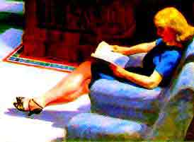 del colegio encontraba sentada a la mujer del artista leyendo plácidamente.