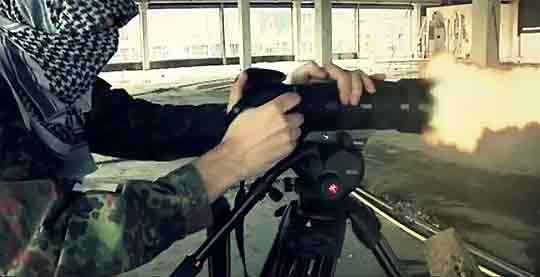 fotografía contiene numerosas referencias al lenguaje bélico: La cámara es un